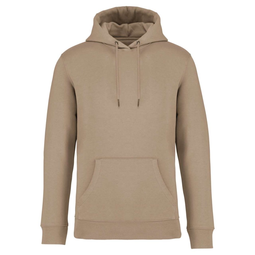 85 % bio, fésült pamutból és 15 % újrahasznosított poliészterből készült. Unisex. Egyenes szabás. Méretcímke organikus pamut és újrahasznosított poliészter logóval. LSF (Low Shrinkage Fleece: előzsugorított polár) kezelés. Kapucni. 1x1 bordás szegély és kézelő. Duplatűzés a kézelőn, a szegélyen és a nyaknál. Szalagozott nyakbelső hátul. Bélelt kapucni, a nyaknyíláson nincs felülvarrás, csak egy megkötés, hogy a húzózsinór a felső részen maradjon. Kerek húzózsinór a kapucnin fém véggel. Kenguru zseb. Nincs márkajelzés a nyakrészen, csak egy méretcímke a könnyű dekorálás érdekében. Karton függőcímkével érkezik, amely felsorolja a termék előállításához felhasznált környezetbarát anyagokat. Organikus pamutfonal. OEKO-TEX N CQ1007/7 STANDARD 100 tanúsítvánnyal rendelkezik. IFTH. 350 g/m2.