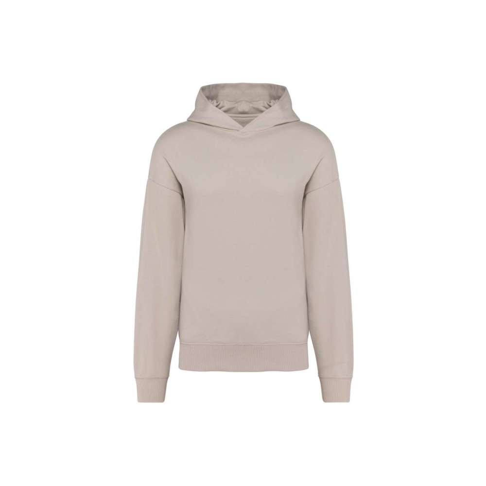 80% cotton / 20% polyester. Oversized fit with dropped shoulders. Brushed fleece. Carded cotton. 1x1 ribbing with a tubular finish on the cuffs and hem. Hidden pocket with invisible zip in the seam on the right side when worn. Cotton hood with double dart. Elastane in the ribbing on the cuffs and at the bottom of the garment to prevent them from going out of shape. Matching twill taped neck. Half-moon finish inside neck. Double overlaid overstitching on cuffs and bottom hem. No brand label on the collar. only a size tag for easy decoration.