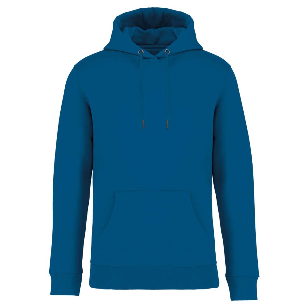 85 % bio, fésült pamutból és 15 % újrahasznosított poliészterből készült. Unisex. Egyenes szabás. Méretcímke organikus pamut és újrahasznosított poliészter logóval. LSF (Low Shrinkage Fleece: előzsugorított polár) kezelés. Kapucni. 1x1 bordás szegély és kézelő. Duplatűzés a kézelőn, a szegélyen és a nyaknál. Szalagozott nyakbelső hátul. Bélelt kapucni, a nyaknyíláson nincs felülvarrás, csak egy megkötés, hogy a húzózsinór a felső részen maradjon. Kerek húzózsinór a kapucnin fém véggel. Kenguru zseb. Nincs márkajelzés a nyakrészen, csak egy méretcímke a könnyű dekorálás érdekében. Karton függőcímkével érkezik, amely felsorolja a termék előállításához felhasznált környezetbarát anyagokat. Organikus pamutfonal. OEKO-TEX N CQ1007/7 STANDARD 100 tanúsítvánnyal rendelkezik. IFTH. 350 g/m2.
