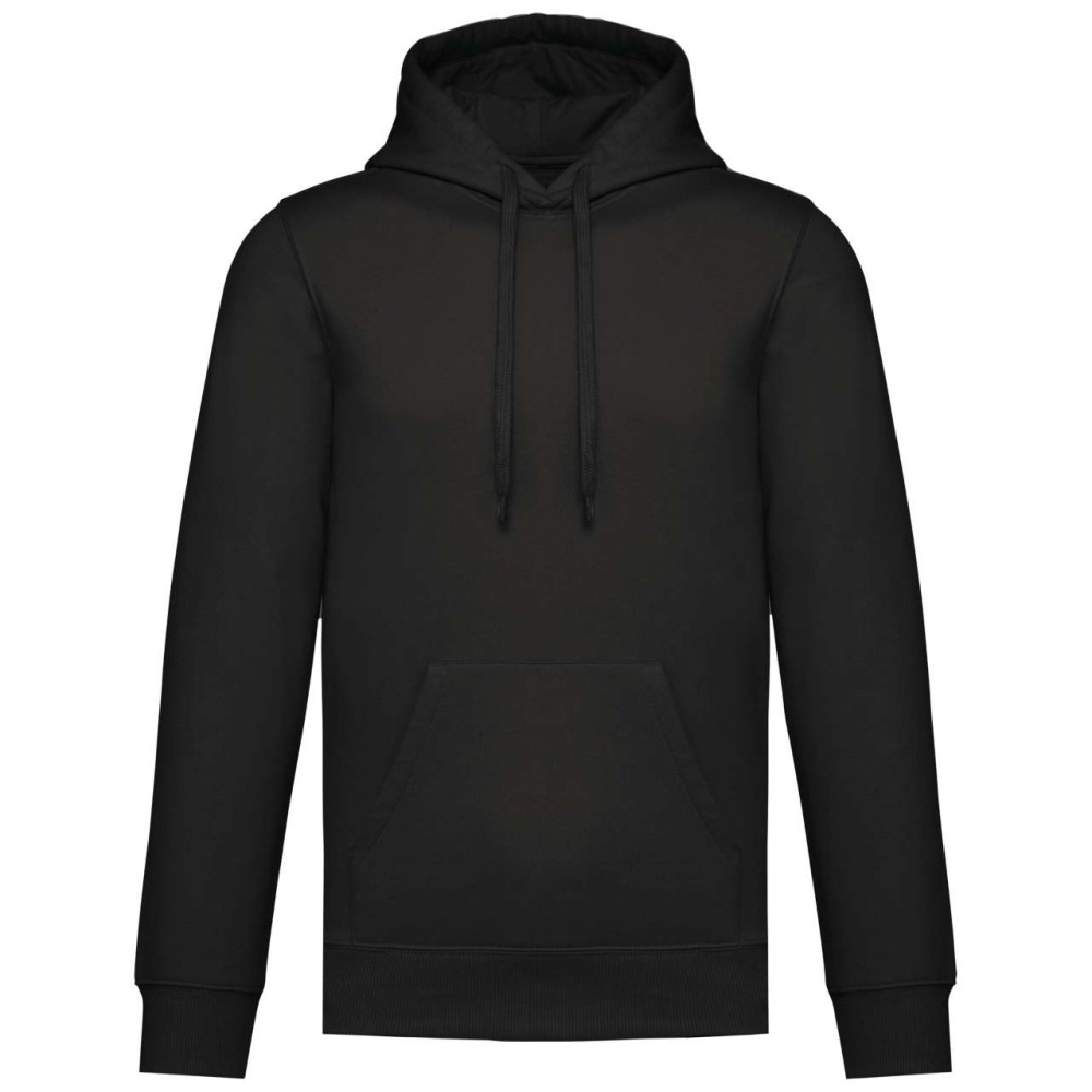 50% gyűrűs fonású pamut / 50% újrahasznosított poliészter, fésült pamut. Egyenes szabású, vágott és varrott. 1x1 bordás kötés a nyakkivágás, a mandzsetta és az alsó szegély jobb megjelenése érdekében. Kenguruzseb. Policotton dzsörzé bélésű kapucni lapos húzózsinórral. Színben illeszkedő dzsörzé szalagos belső a nyakkivágásnál. Csak méretcímke márkajelzés nélkül.