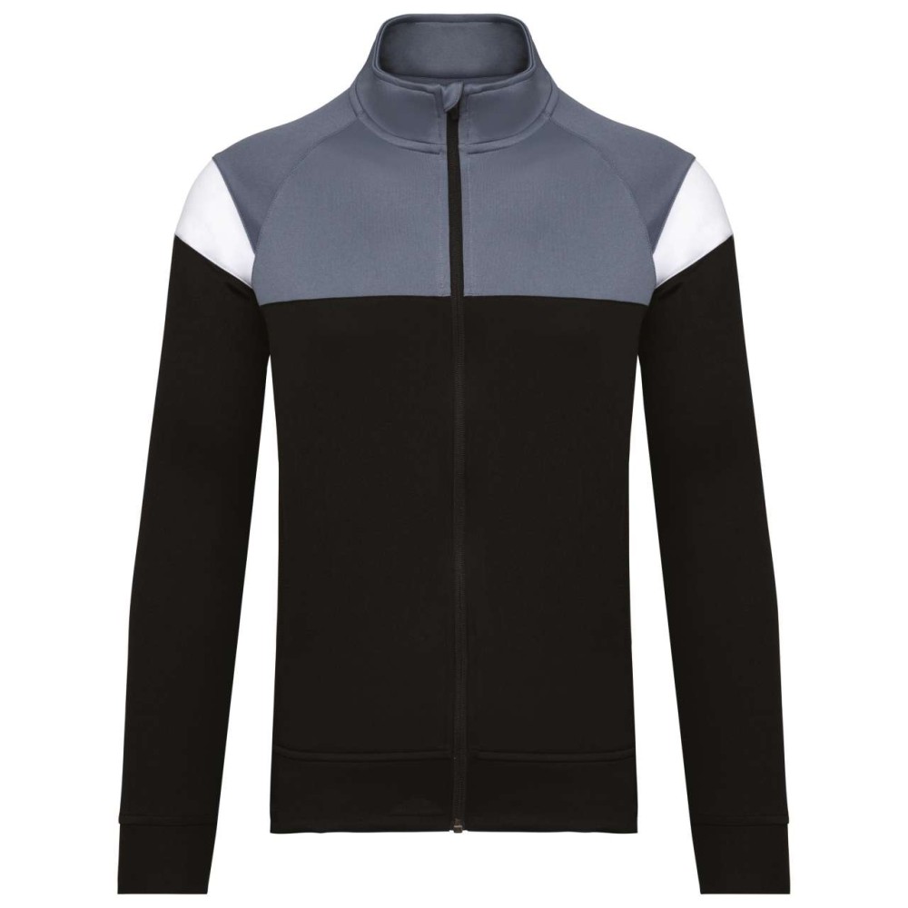 Anyaga: 100% matt poliészter interlock. Egyenes szabás. Elöl fordított cipzáras záródás színazonos nejlonból. Raglán ujjak kontrasztos vállbetétekkel. Kontrasztos mell- és vállkialakítás. Két cipzáras elülső zseb. Texturált anyagbetétek az oldalakon és a hátrészen. Cipzárfedő a felső nyakkivágásnál a nagyobb kényelem érdekében. Könnyen eltávolítható márkajelzés a dekorációhoz.