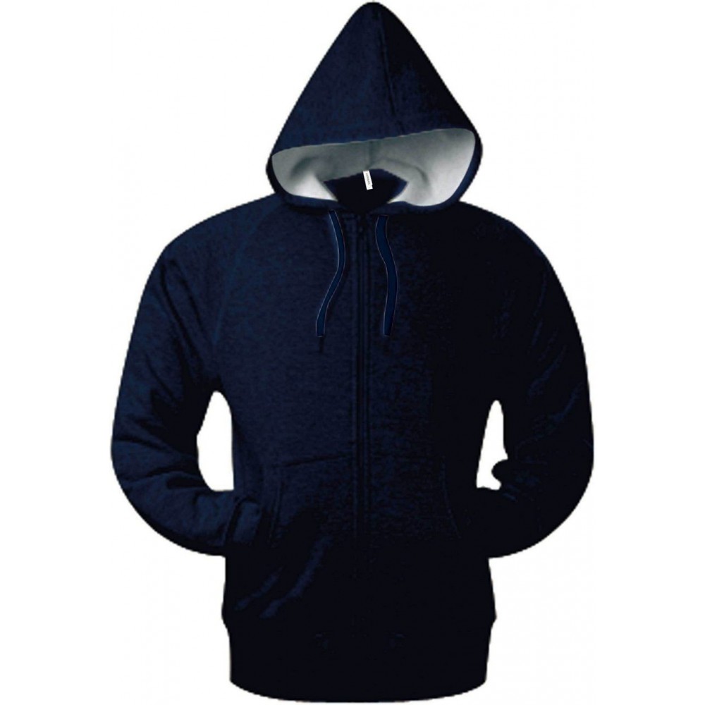 80% pamut és 20% poliészter. Belül bolyhos anyag, szilikonos mosással kezelve. Szürke színű szalagerősítés a nyakban és kapucnibélés, kenguruzseb, bordás ujj- és derékpasszé, YKK cipzár. 360 g/m2.