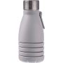 Összecsukható palack rozsdamentes acél fedéllel és alumínium karabinerrel. Összecsukott méret: d: 7x17 cm, kinyitott méret: d: 7x25 cm. Nincs egyenként csomagolva. Anyaga: szilikon. Űrtartalom: 550 ml.