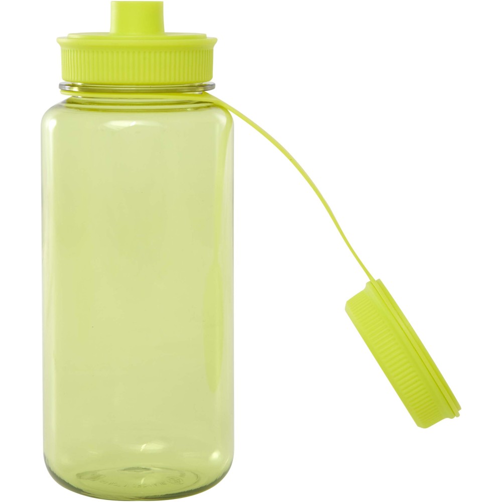 Egyfalú sportpalack RCS tanúsítvánnyal rendelkező RPET-ből, csavaros tetővel, szivárgásmentes fedéllel és fogantyúval. Kettős nyitású kialakítás a könnyű tisztítás és töltés érdekében. Az EFSA által jóváhagyott (Európai Élelmiszerbiztonsági Hatóság) PET újrahasznosítási folyamatnak megfelelően készült. Űrtartalma: 900 ml.