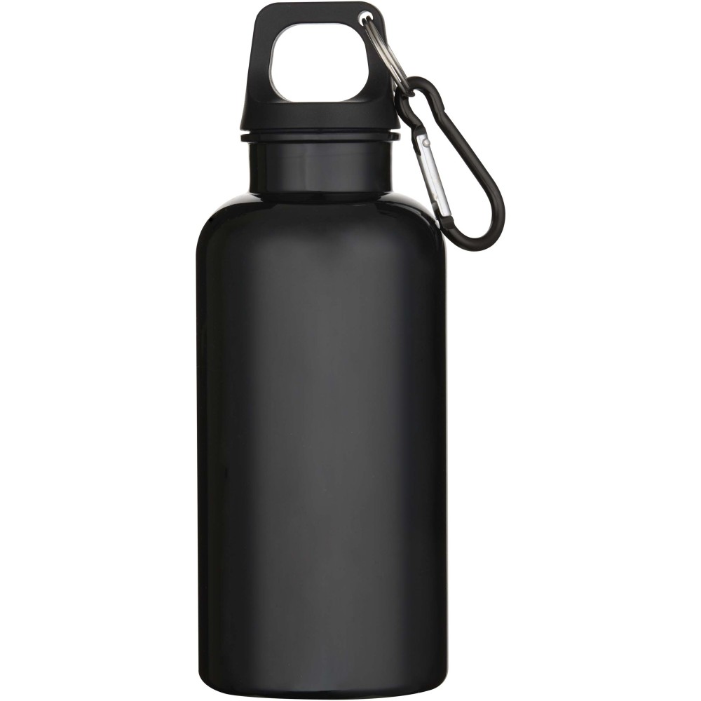 Az RCS tanúsítvánnyal rendelkező RPET-ből készült, tartós, mégis könnyű, 400 ml-es kulacs lehetővé teszi a folyamatos hidratálást. Tökéletes kísérő sportoláshoz, kirándulásokhoz vagy irodai használatra. A szimplafalú Oregon palack csavaros kupakkal rendelkezik, és bőséges felületet kínál bármilyen logó elhelyezésére. A mellékelt karabiner segítségével (mely mászásra nem alkalmas) a kulacs biztonságosan táskához rögzíthető. A termék megfelel az EFSA által jóváhagyott PET újrahasznosítási szabályoknak.