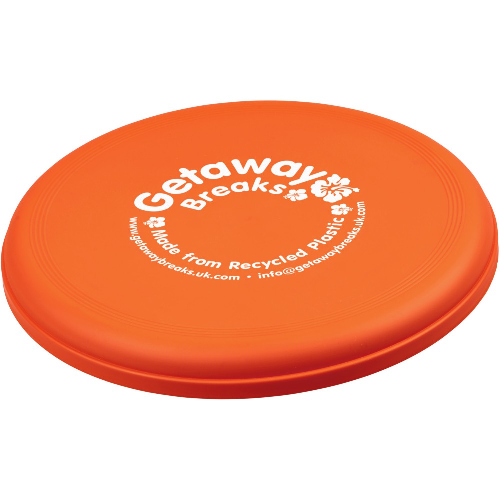 A 100%-ban újrahasznosított műanyagból készült frizbi, amely jó promóciós ötlet fenntartható formában. Az Egyesült Királyságban készült, és megfelel az EN72 szabványnak.