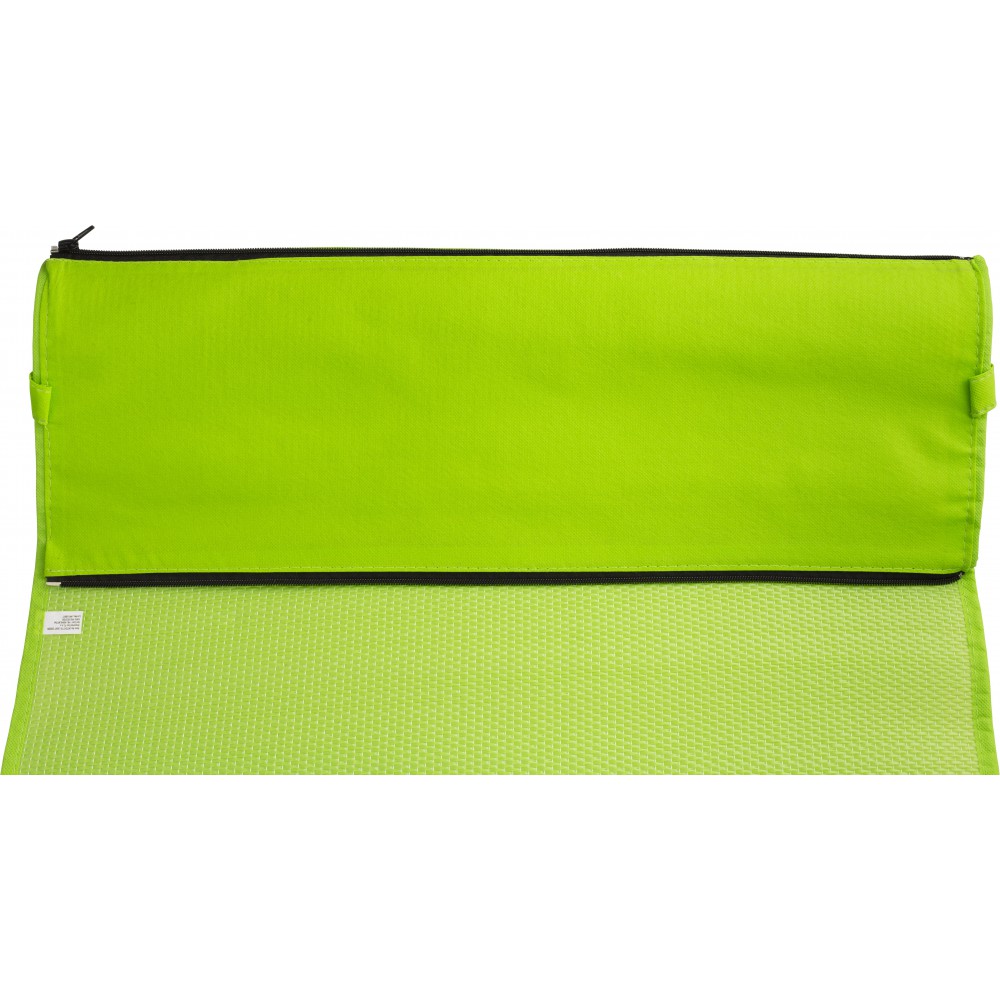 Összehajtható napozó színben illeszkedő hordozópánttal. Cipzárral összezárt mérete: 2,5 x 71 cm. PP nemszőtt anyag.