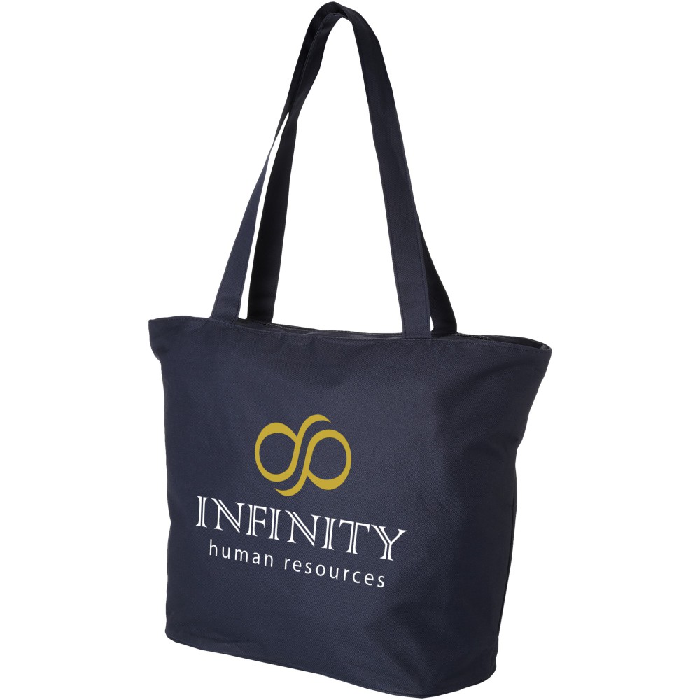 Legyen szó rendezvényről, strandról vagy bevásárlásról, a Panama cipzáras táska a tökéletes többcélú táska. A táska strapabíró 600D poliészterből készült, és egy cipzáras fő rekesszel rendelkezik. A táska belsejében található kis cipzáras zseb helyet biztosít néhány apró tárgynak, például tollnak vagy kulcsoknak. Fülek magassága 34 cm, így vállon is hordható.
