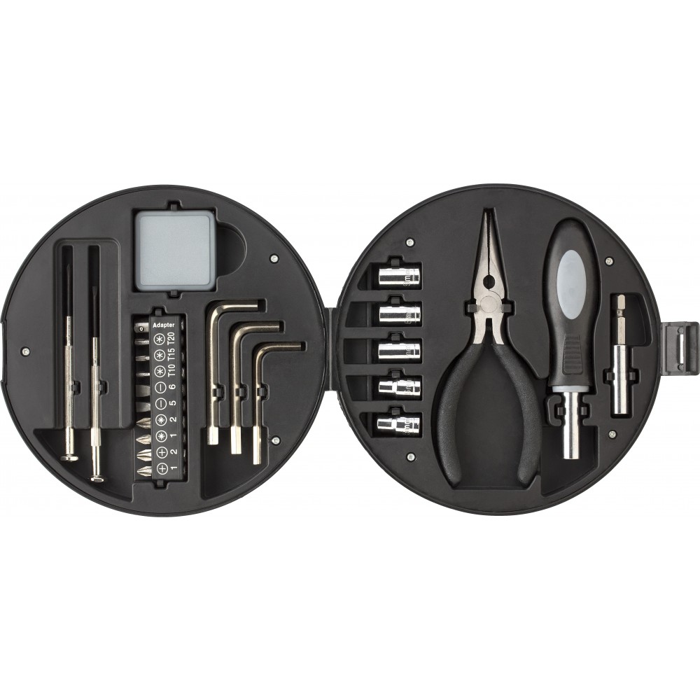 25 db-os szerszámkészlet abroncs formájú tartóban.