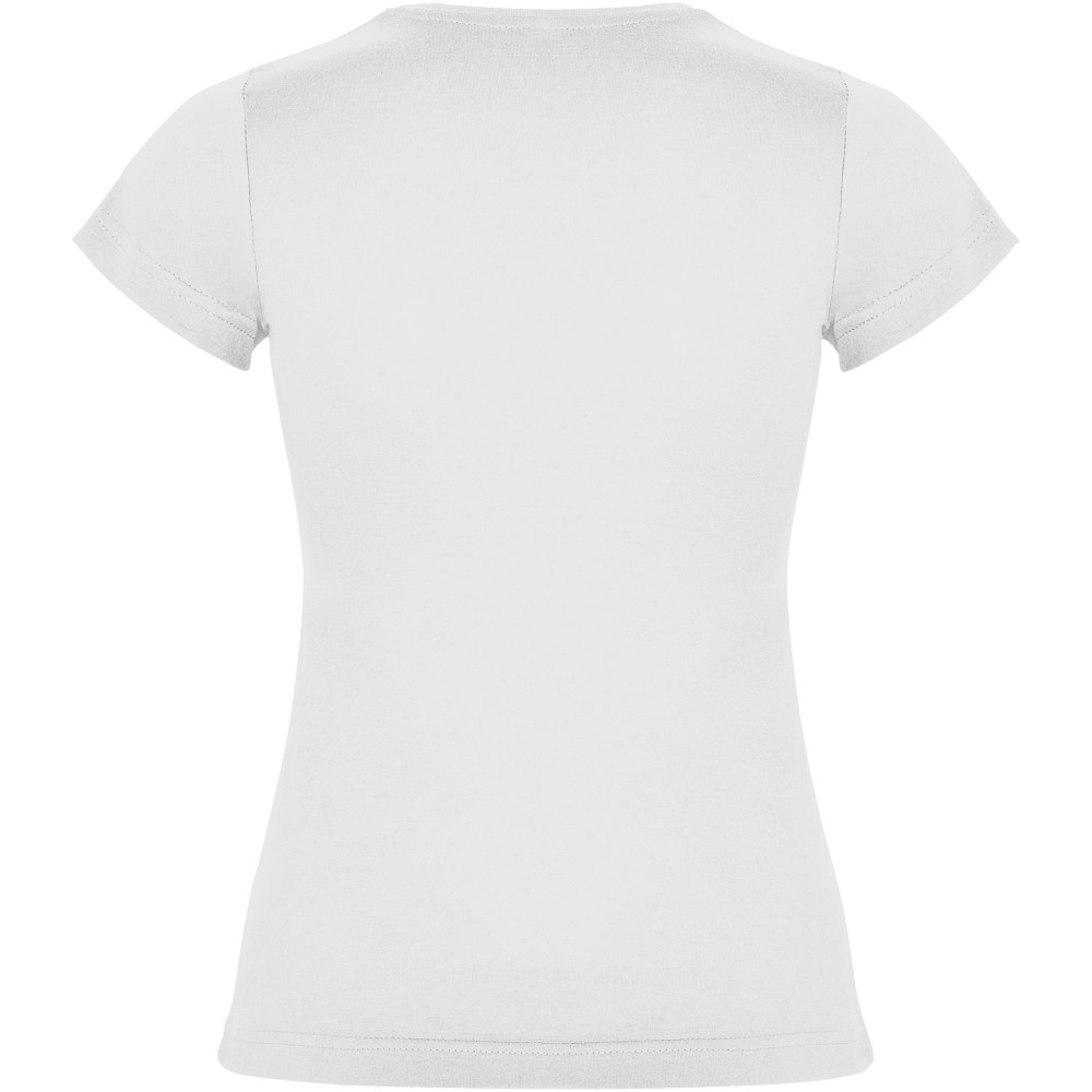 Rövidujjú, karcsúsított, oldalvarrott női póló. 1x1 dupla rétegű bordás nyak és válltól vállig tartó fedett varratok. 100% pamutból készült, 155 g/m2 súlyú, egyrétegű Jersey kötés.