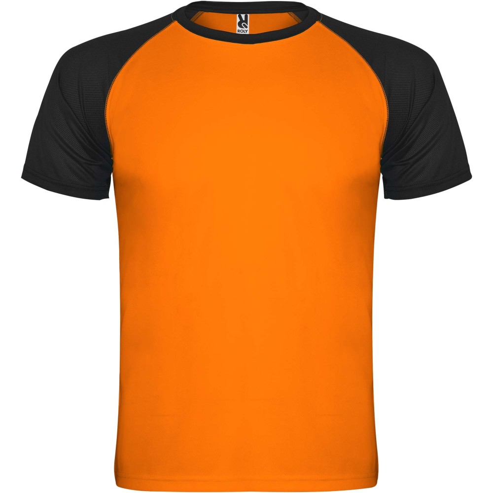 Roly Indianapolis rövid ujjú uniszex sportpóló, Fluor Orange, Black
