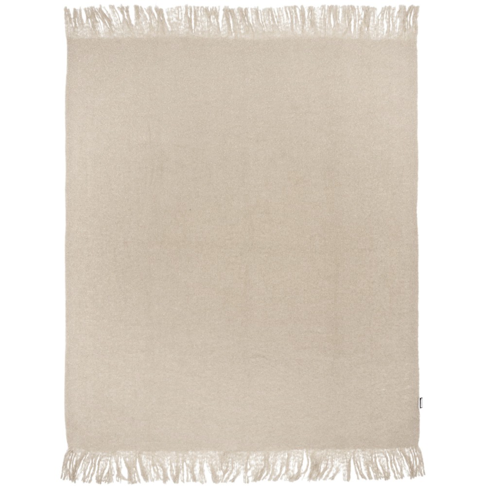 Ultrapuha újrahasznosított PET-ből készült moher takaró összefogó pánttal. A rojtok hossza: 10 cm mindkét végén. Összefogó szalag mérete: 72 x 4 cm. 215 g/m2.