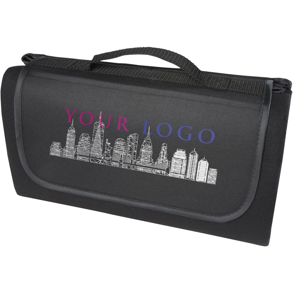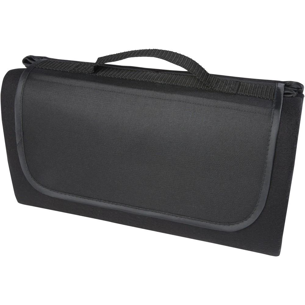 Vízálló, 140 g/m2-es pikniktakaró újrahasznosított PET műanyagból, fenntartható választás. Összecsukva és rögzítve a takaró könnyen tárolható és hordozható a mellékelt fogantyúval.