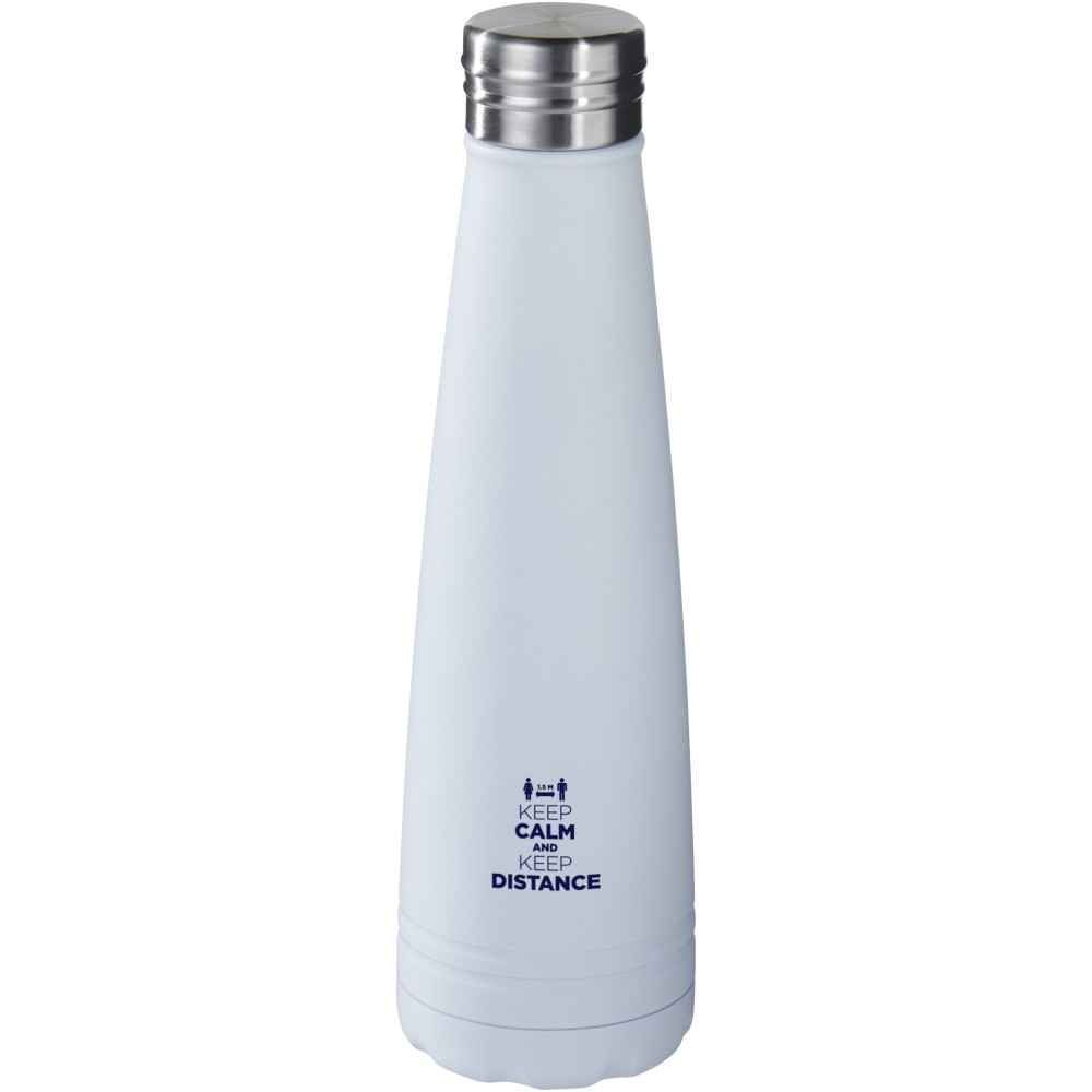 Duke vákumos palack. Belső fala réz, ennek köszönhetően 48 órás hideg- és 12 órás melegtartási képességgel rendelkezik. Szivárgásmentes. Szénsavas italokkal nem használható. Mosogatógépben nem mosható és mikrohullámú sütőben történő melegítésre nem alkalmas. Űrtartalom: 500 ml. Csomagolása Avenue díszdoboz.