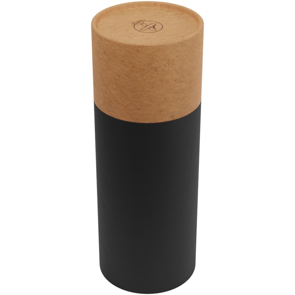Duplafalú, vákuumszigetelt rozsdamentes acél és bambusz palack, a fedél tetején hőmérséklet-érzékelővel, amely a palack belsejében lévő ital hőmérsékletét mutatja (Celsius fok). Az italokat 8 órán keresztül melegen, vagy 12 órán keresztül hidegen tartja. Teafilterrel együtt. Űrtartalom: 500 ml. Díszdobozban szállítjuk.
