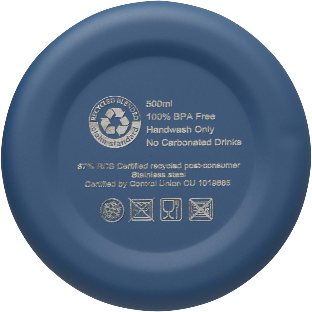 Rézvákuum szigetelésű, RCS tanúsítvánnyal rendelkező rozsdamentes acél palack letisztult dizájnnal. Az szigetelt rozsdamentes acél szerkezet megakadályozza a kondenzációt a palack belsejében, és a trendi matt porfestett felület extra tartóssá teszi. BPA-mentes, német élelmiszerbiztonsági jogszabály (LFGB) szerint tesztelt és jóváhagyott. Ftalát-tartalom szerint REACH szabályozásoknak megfelelően tesztelt és jóváhagyott. Űrtartalom: 500 ml. Kézi mosogatás javasolt. Újrahasznosított kartondobozban szállítjuk.