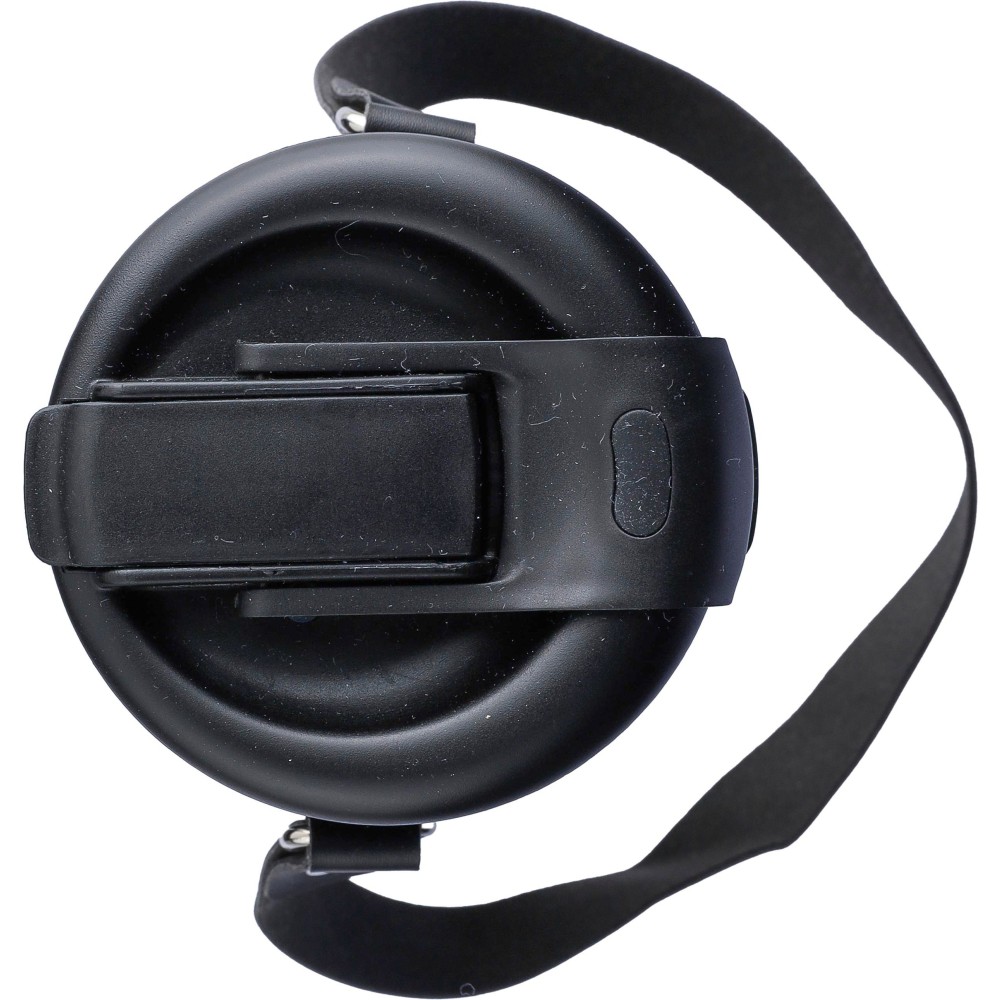 Duplafalú palack PU hordozótokkal, szívószállal és pánttal. A belső rész 304-es rozsdamentes acélból, a külső rész 201-es rozsdamentes acélból készült. PP fedél nyomógombbal a kifolyó nyitásához vagy zárásához, valamint külön ivónyílással. A tartalmát 6 órán át melegen és 10 órán át hidegen tartja. Egyenként barna kartondobozba csomagolva. Űrtartalom: 730 ml.