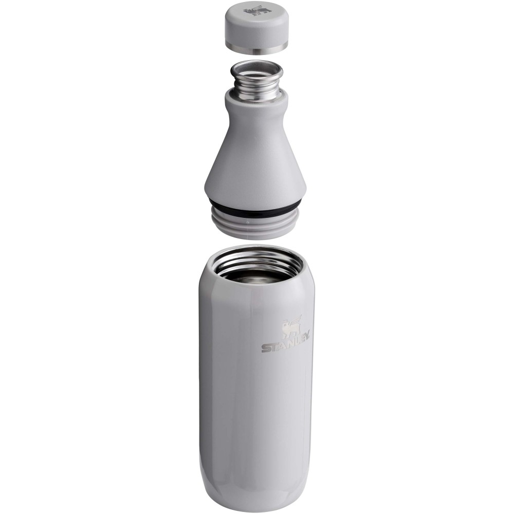 A Stanley 350 ml-es All Day Slim vizespalackot a napi hidratálásra tervezték, ötvözve a kényelmet és a teljesítményt. 90%-ban újrahasznosított rozsdamentes acélból készült, két részből álló nyílással rendelkezik: az egyik a könnyű iváshoz, a másik a jég hozzáadásához és a problémamentes tisztításhoz. A nyak egyfalú rozsdamentes acélból készült, műanyagmenetes gallérral és tömítéssel, amely megakadályozza a szivárgást. A test duplafalú vákuumszigeteléssel rendelkezik, biztosítva, hogy az italok órákon át a tökéletes hőmérsékleten maradjanak. Tartós és gondosan megtervezett, ideális palack a felfrissüléshez.Csak emblémázottan rendelhető. Minimális rendelhető mennyiség: 5 db.