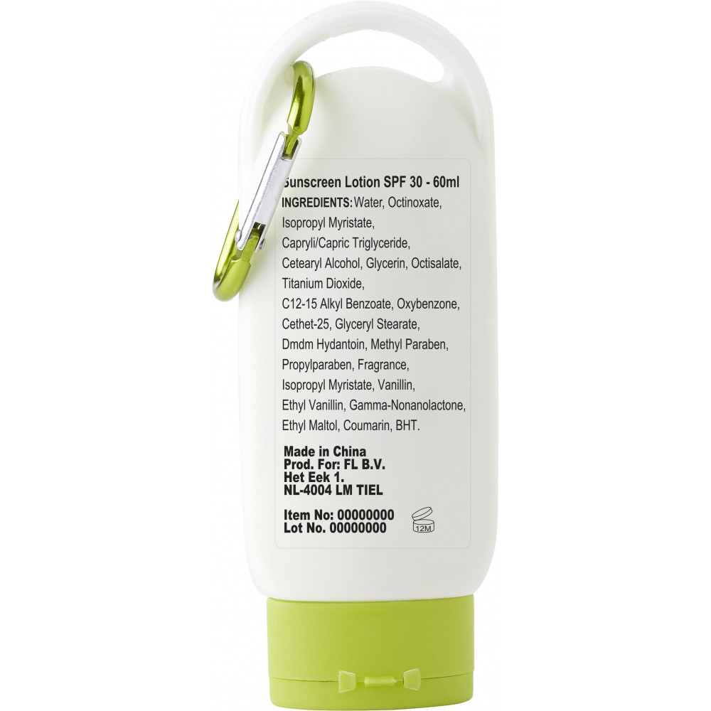 Naptej SPF 30 védelemmel, karabinerrel, színben illeszkedő tetővel. 60 ml.