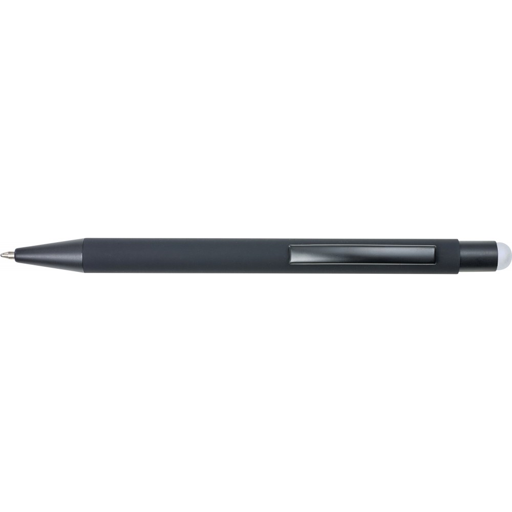 Golyóstoll színes érintővel, kék tollbetéttel és színes belső felülettel. ABS műanyag és alumínium.