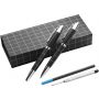 Lakkozott felületű golyóstoll fekete tollbetéttel és töltőceruza, színben hozzáillő dobozban.
