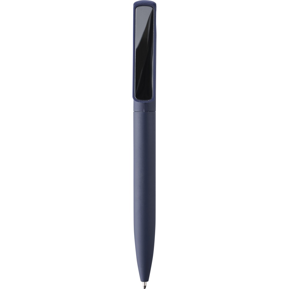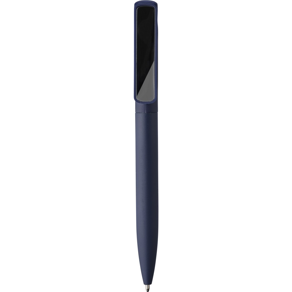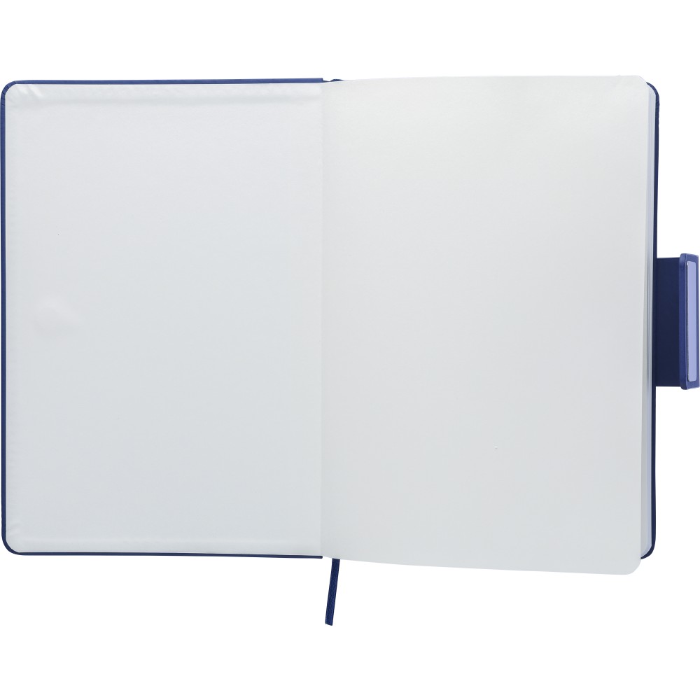 Karton ajándékkészlet. Tartalma: újrahasznosított alumínium csavaros golyóstoll kék tintával és újrahasznosított PU jegyzetfüzet. A jegyzetfüzet 80 lapos 70 g/m2-es vonalas papírral, és szalagos könyvjelzőt és fém mágneses zárat tartalmaz acélszürke gravírozott lappal. Mindkét termék újrahasznosított logóval van ellátva: dombornyomva a jegyzetfüzeten és gravírozva a tollon.