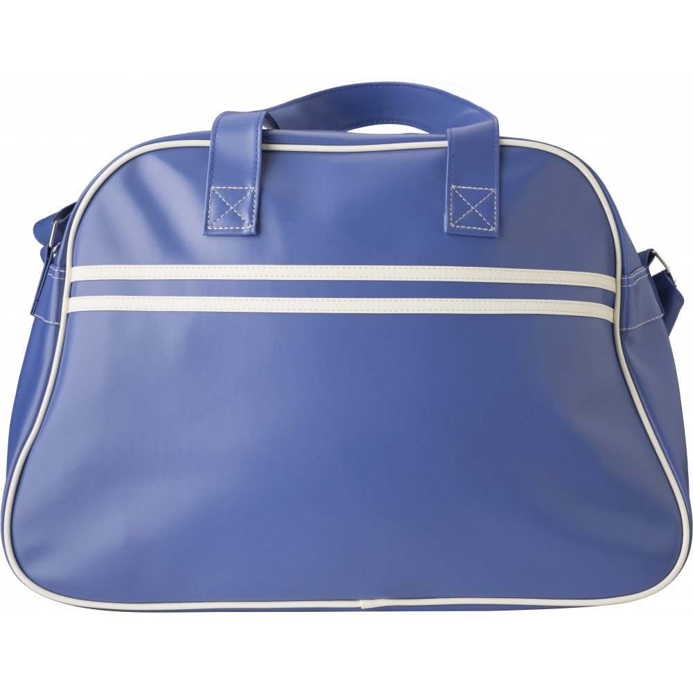 Sporttáska fehér csíkokkal és szegéllyel, állítható vállpánttal. PVC.