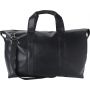 Bőr sporttáska cipzárral. Belsejében egy kis, cipzáras rekesz található. Két rövid fogantyúval és egy állítható vállpánttal.
