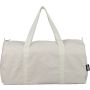 Újrahasznosított pamut-poliészter, 330 g/m2 kevertszövetből készült sporttáska nagy, cipzáras felső rekesszel, 100 cm hosszúságú és 3 cm szélességű hosszú fülekkel, a táska színével megegyező hevederrel. Megközelítőleg 30 literes űrtartalommal rendelkezik. A külső felületen rPET címkével, a belső részben újrahasznosított alapanyagra utaló címkével ellátva.
