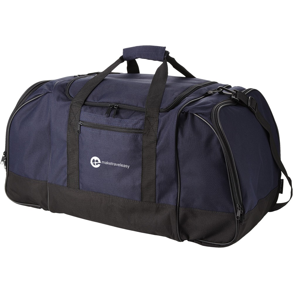 Utazótáska állítható vállpánttal, nagy zsebekkel oldalt és elöl.