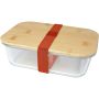 Roby üveg ételtartó bambusz fedéllel, téglavörös pánttal