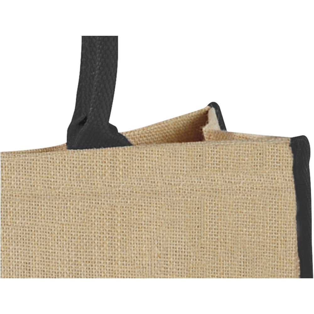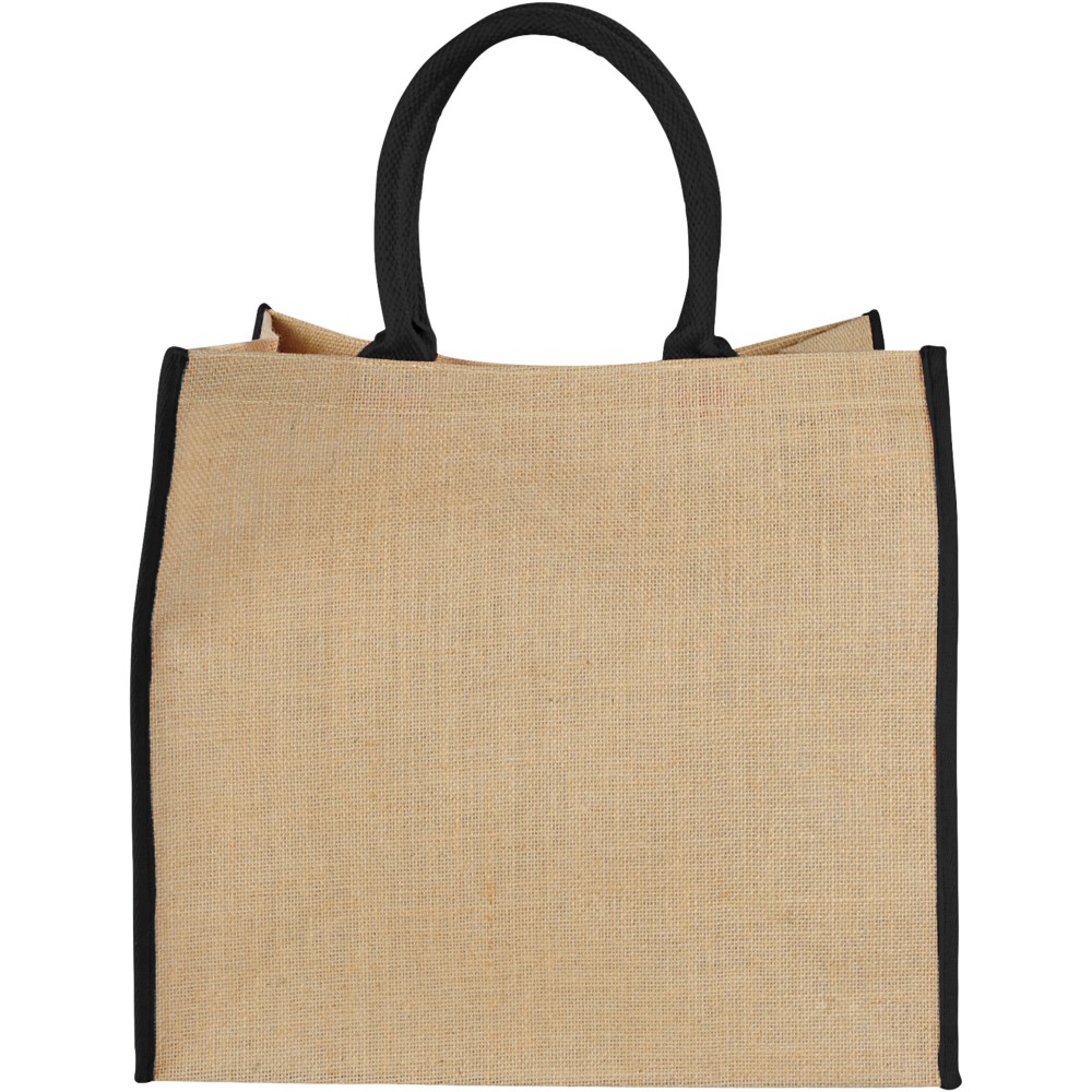 The Large juta bevásárlótáska tépőzáras kialakítással. A lehajtható fülek magassága 17 cm. Megjegyzés: finom grafikát vagy szöveget nem, csak vastag, erős nyomatott lehet az anyagon alkalmazni. Juta.