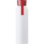 Fényes felületű palack színes kupakkal és szilikon pánttal. Csak hideg víz tárolására alkalmas. Nem szivárgásmentes. Mosogatógépben nem tisztítható. PS műanyag és alumínium. Űrtartalom: 650 ml.