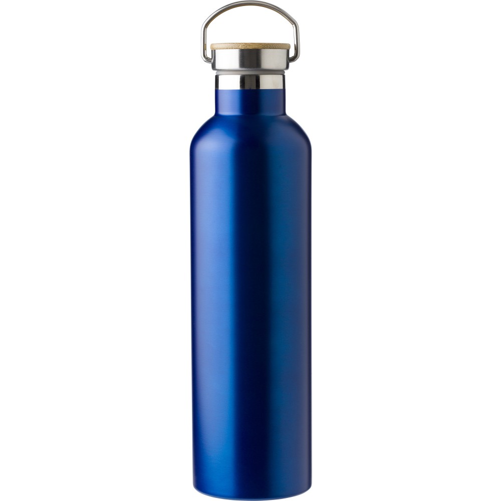 Duplafalú palack bambusz betéttel a kupakon. Rozsdamentes acél. Nagy űrtartalmú palack: 1L.