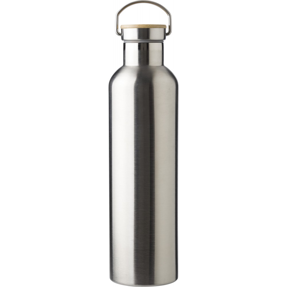 Duplafalú palack bambusz betéttel a kupakon. Rozsdamentes acél. Nagy űrtartalmú palack: 1L.